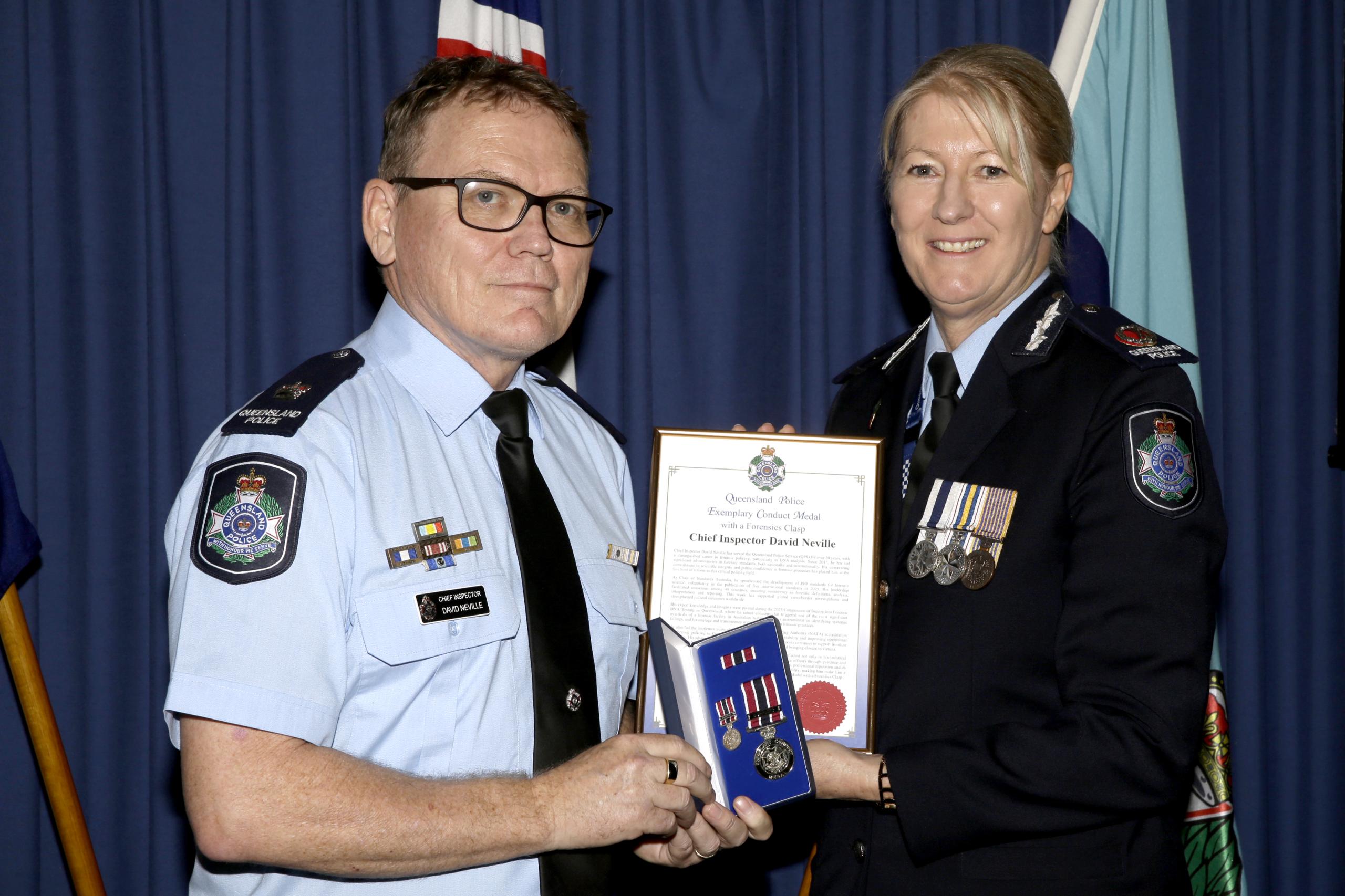 The Queensland Police Service’s (QPS) Forensic Services Group (FSG) proudly recognised the exceptional contributions and long-standing dedication of its members during the annual Honours and Awards Ceremony held in November at Roma St Police Headquarters.