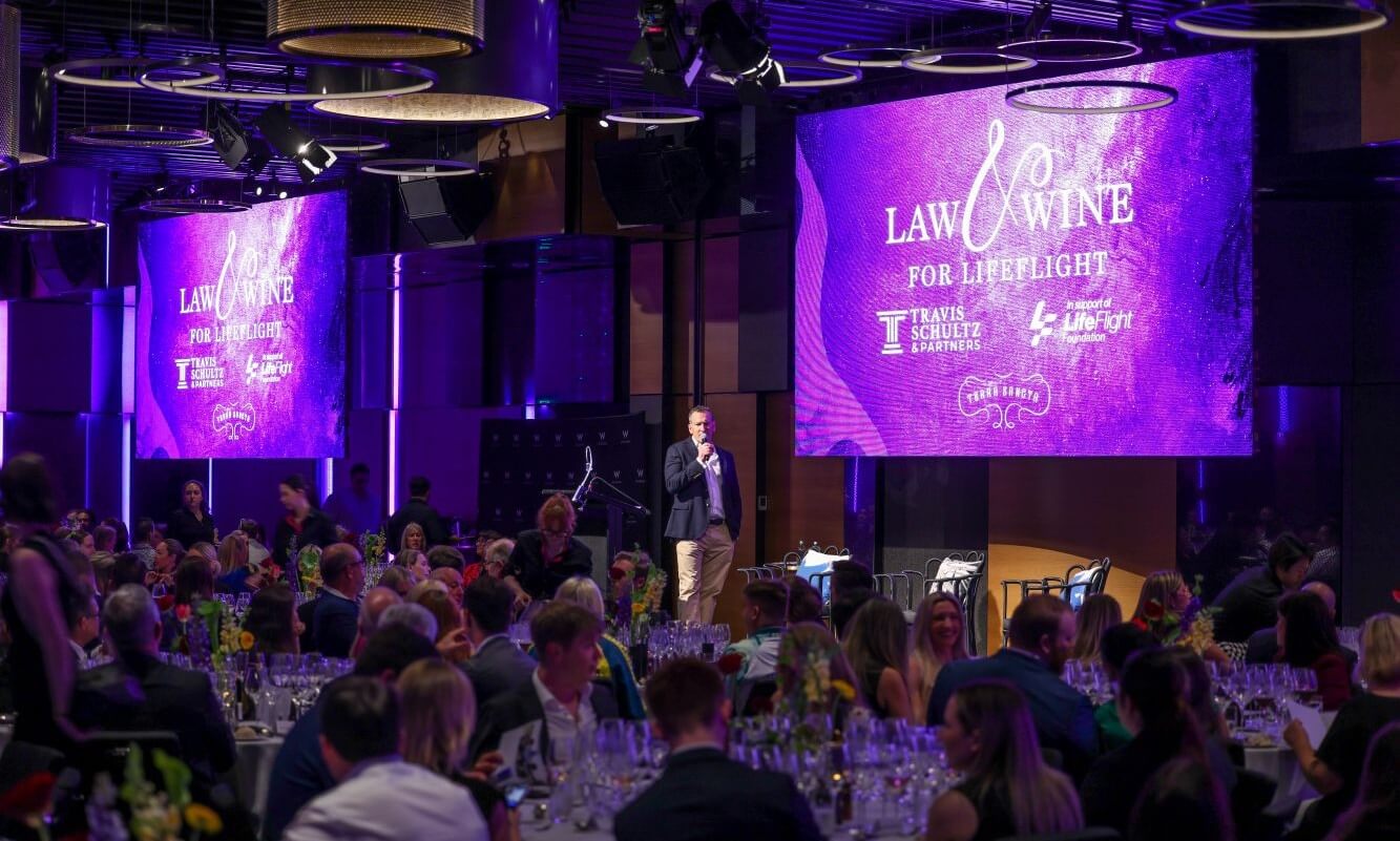 Brisbane’s legal community raised a record-breaking $70,000 for LifeFlight at the Olympics-themed annual Law & Wine Dinner, hosted by Travis Schultz and Partners, recently.