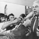 Expedition 64 crew members relax after a meal.